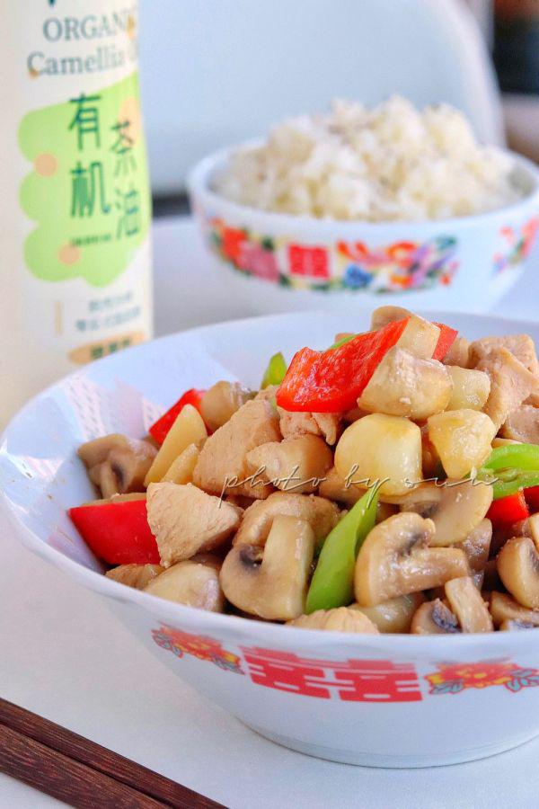 中式炒菜简单易做。 清新可口的味道特别 鸡胸肉和蒜粒 蘑菇一起炒开吃 干净可口♥ ( 。→v←。 ) ♥ 另外,用高油酸的千岛源有机喷雾茶油烹制 吃起来更健康一倍 ~