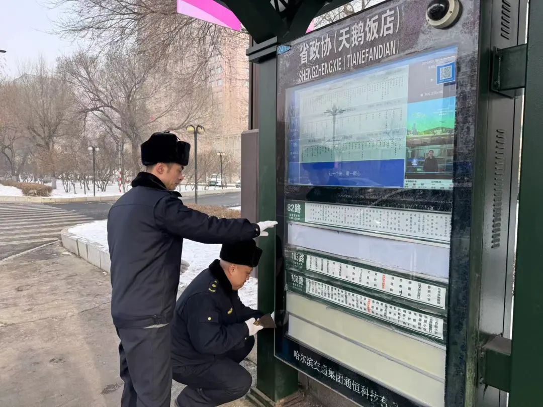 为确保春节期间城市的整洁和秩序,香坊区城市管理服务中心全体员工上岗,秉承“假期不休,标准不减”的原则,精心安排和明确职责。加强对商业街区、政务通道等关键市政道路的检查,确保道路畅通无阻,市容整洁有序。综合性中队负责确保电子公共汽车站牌和牌匾安全。香坊区城市管理服务中心带领综合业务中队加强对电子公交站牌的检查监督,增加检查频率,确保每个站牌都能准确及时地提供出行信息。香坊区城市管理服务中心在市政道路检查方面,认真落实管理责任,全面排查道路损坏、道边石倾斜、清洁等问题。特别是亚冬将保障道路,加强市容秩序控制,全力维护城市良好形象。