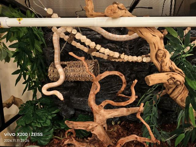 本人坚持“少生优生”的理念(什么鬼),目前并不打算购买其它蛇,而是把心思和预算都花在改善饲养环境上,在 b 站点啃了很多科学丰容,满意饲养。(满足蛇的需要而不是强迫)重点知识,我甚至啃了文献,把环境布局升级了好几次。我想从垫子、灯具、玩具、避开、栖息地外的活动空间等方面给蛇一个更好的生活。