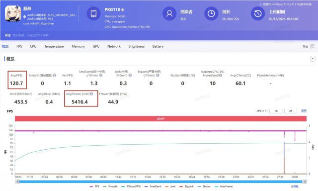 一加 Ace 5 半小时 120 帧“原神”的帧率和功耗