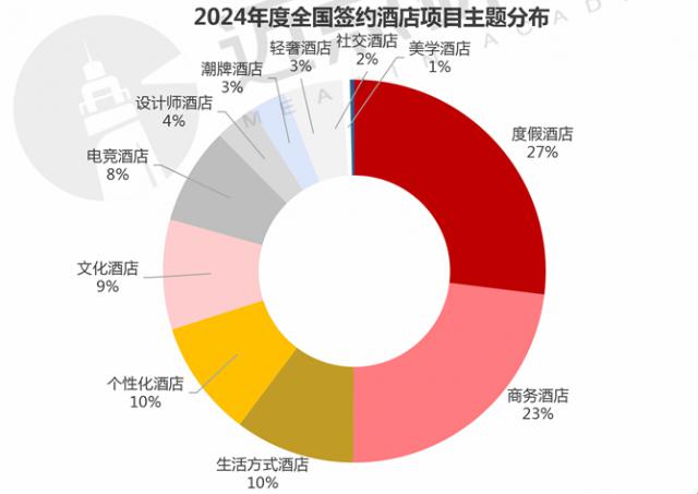 事实上,目前大多数酒管公司已经洞察到了市场趋势的变化。根据迈点研究院最新发布的《》,2024 年度新签约酒店,有 27% 为了度假酒店,这个比例超过了比例。 23% 的商务酒店。除了度假酒店,生活方式酒店、个性化酒店、文化酒店也占据了一定的比重,这其实和旅游需求有着千丝万缕的联系。