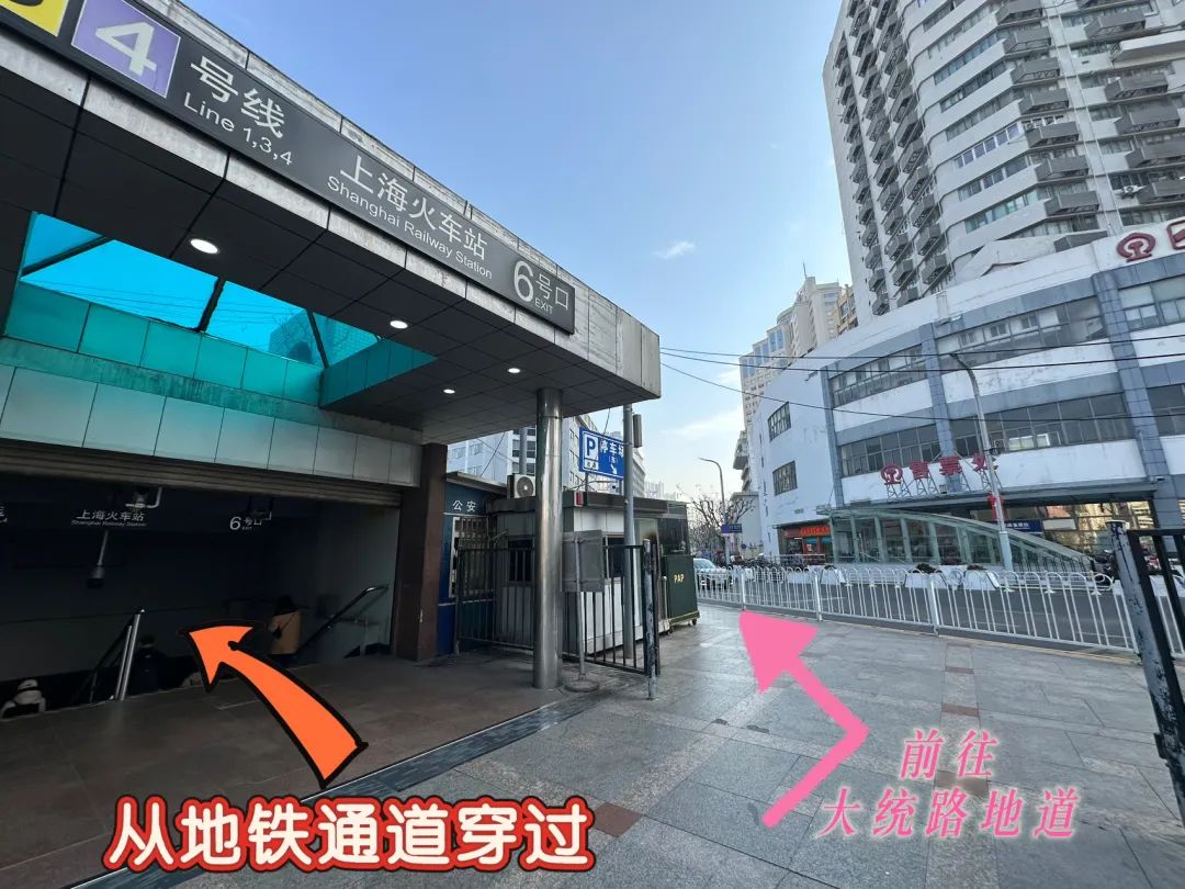 【从南到北】如果你想从上海站南广场前往北广场:可以从南方地铁3、从地铁3号线6号口进入通道、4号线10号口出站到北广场;在通道关闭期间,请按照指示标志,从大统路地道前往北广场。