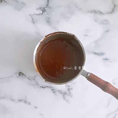 1、25g 黑巧克力 15g 将黄油隔水加热至融化后搅拌均匀