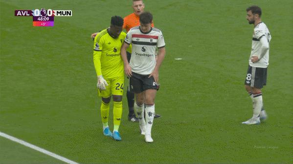 但是在上半场的最后一刻,马奎尔在一次定位球防守中被怀疑拉伤了大腿,随后倒地不起,曼联队医进场治疗他。