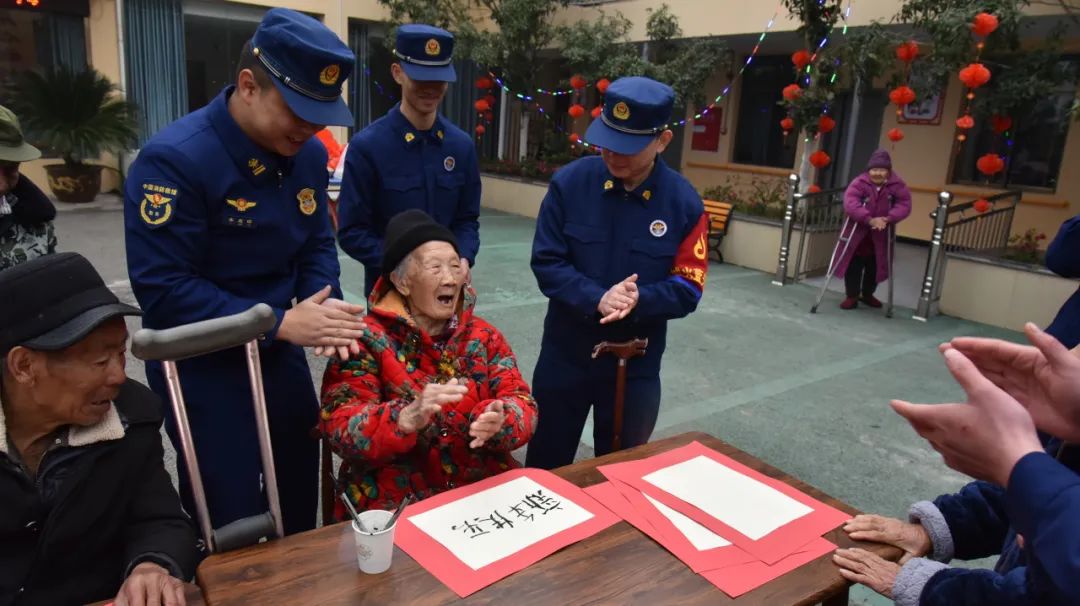 ⬆️达州支队消防队员深入辖区养老院开展消防志愿服务活动,与老人一起包饺子,写“福”字。