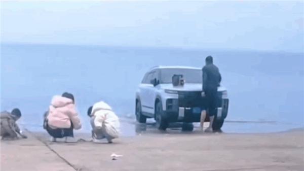 录像中,这位奇瑞车主在广西防城港海边游玩时,一时兴起竟将车辆开到海边,用海水给车辆洗车。