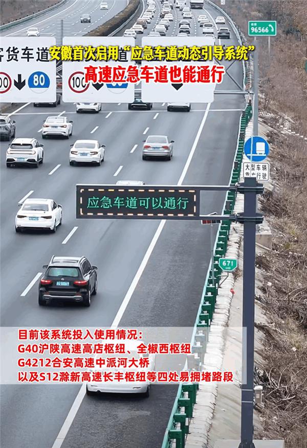 报告显示,今年春运高峰期间,安徽省交通控制集团将在一些容易拥挤的道路面试中推出“应急车道动态引导系统”。