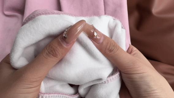 面料摸起来滑滑的有点像奶皮的质地,上手忍不住摸了摸。随意揉捏都不容易起皱,很好打理。