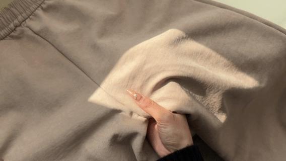 春天和夏天的布料有丝绸的质感,特别光滑轻肤,但是也不容易勾丝起毛,裤子上身很舒服,没有存在感。