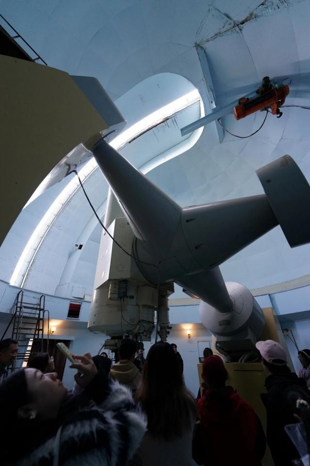下午,我们到达抚仙湖东岸抚仙湖太阳观测站。这儿一年四季的光照时间可以到达。 2200 小时候,当我们到达时,天空晴朗无云,但风很大,湖泊像海浪一样拍打着岩石覆盖的湖岸。屋顶上一米新真空太阳眼镜(NVST)我们正在继续工作。它是中国太阳物理和空间科学中光学和近红外观测太阳的主要设备,也是世界上最大的真空望眼镜。