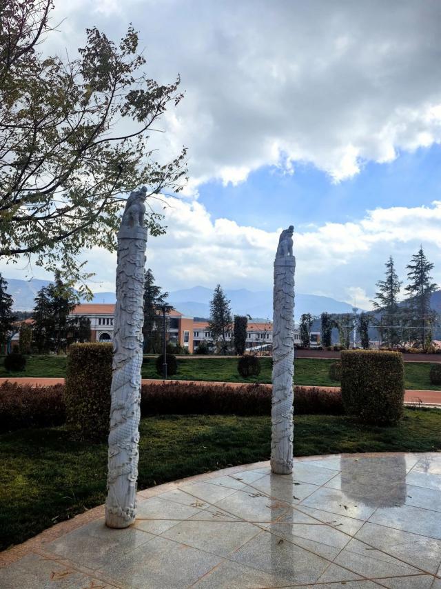 在云南大学呈贡校区,我们参观了云南大学物理与天文系和云山顶的云南大学天文台。天文台上有球幕放映厅、科普展厅和教学科研展厅。 1 大米光学望远镜。天文台外面还有一个太阳历广场。大寒后的一天,我们来访的时候,碰巧看到中午太阳投射在“大寒”这个词上,可谓精致的设计。