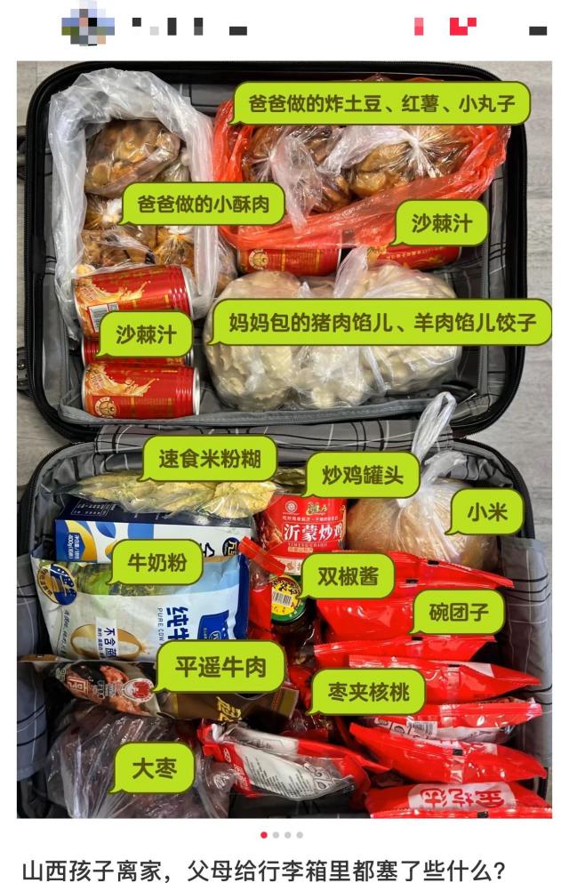 这些都不算什么,山西网友的行李箱也被“喂”饱了。