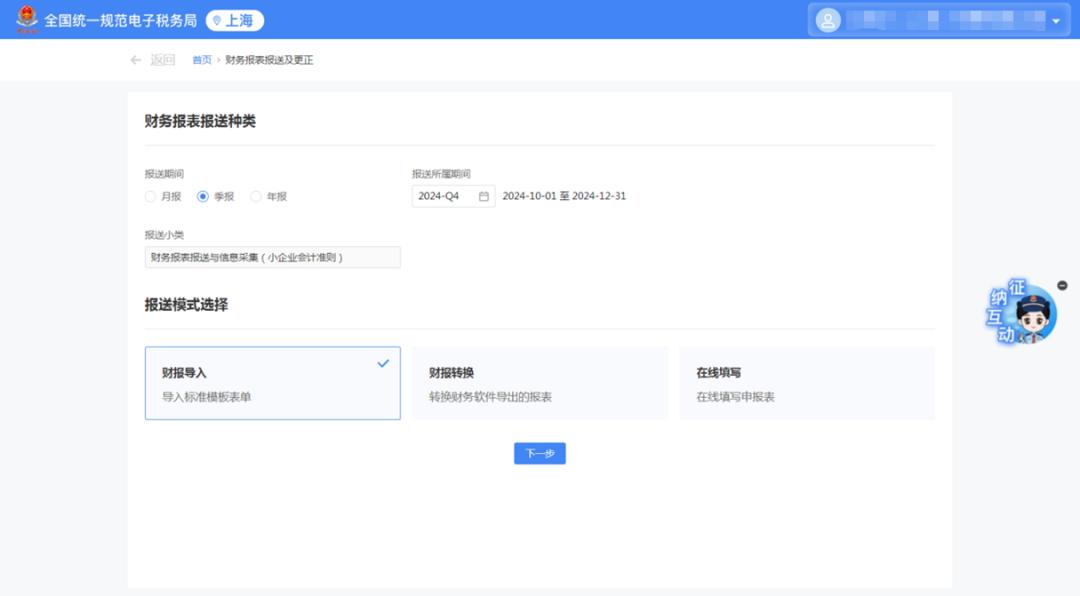 以年度财务报表为例,点击【税务机关年度财务报表填写】。您可以自动跳转到新电子税务局的财务报表提交和更改模块,无需再次登录。