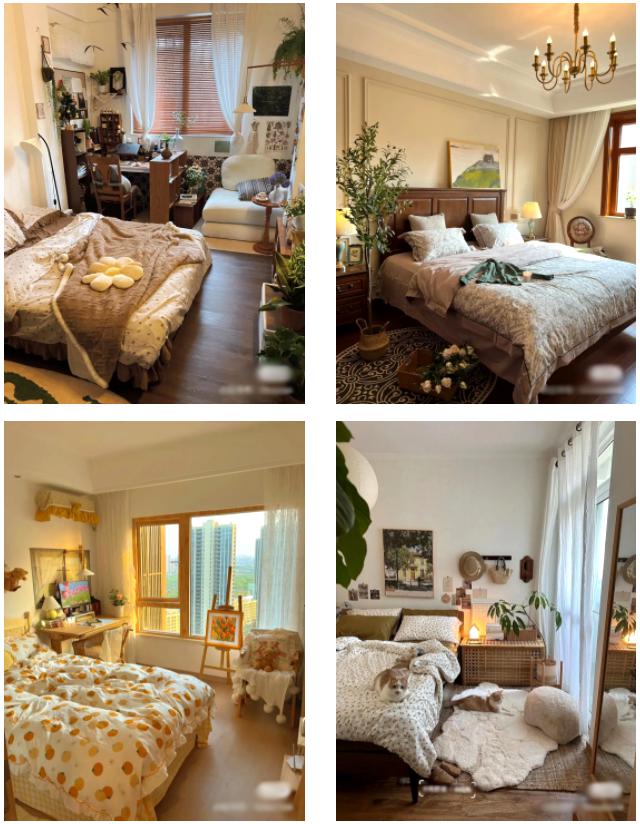 看了很多关于卧室审美的照片,发现省事的方法不在于买软装,而在于选择好看的床上用品。