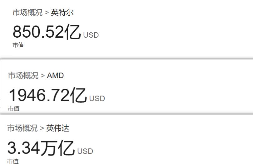第一,相信你们今天应该了解英特尔的情况吧?——10年前, 10个 AMD 和 十个英伟达加起来就等于一个英特尔,而现在, AMD 英特尔的市场价值 2 倍多,英伟达的市值即将达到英特尔。 40倍。