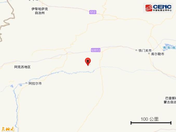周边县:震中距轮台县74公里,距沙雅县80公里,距库车市82公里,距新和县100公里,距拜城县170公里,距铁门关市176公里。