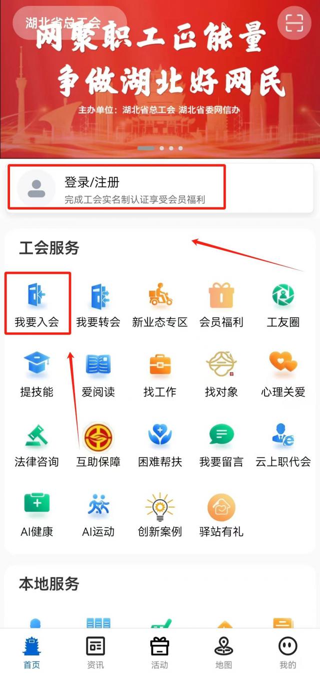 点击"登录 / 注册"或"我想入会"后授权,即可成功注册。