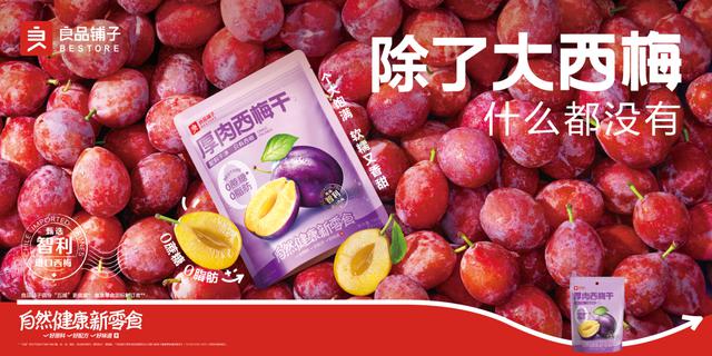 该品牌还提出了“零食配料表革命”,根据「减盐,减油,减糖,减脂,减少添加。」的「五减」零食新标准生产商品。以“厚肉西梅干”为例,品牌突出优质原料,无添加剂,让顾客直观感受。「自然健康」。