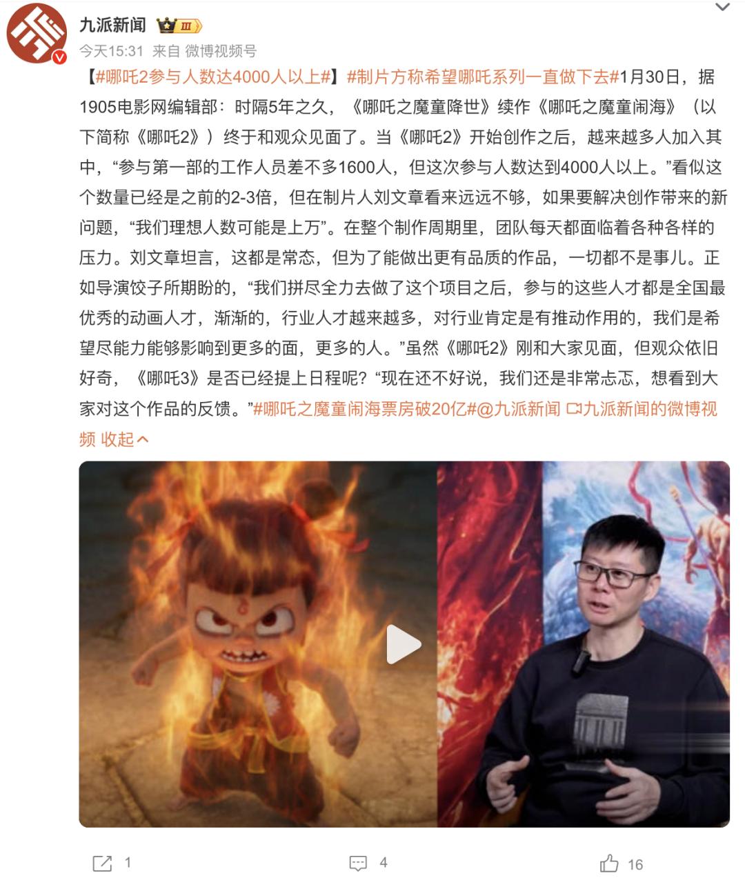 特效,故事,艺术,音乐…在中国动画的许多阶段,背后是近年来整个动画产业技术的稳步进步。在《哪吒2》的结尾,有几十个外包制作人和4000人参加了采访。如此大规模的人员协调展现了如此完整的效果,这也标志着中国动画产业工业化体系,尤其是制作工艺工业化的初步形成。