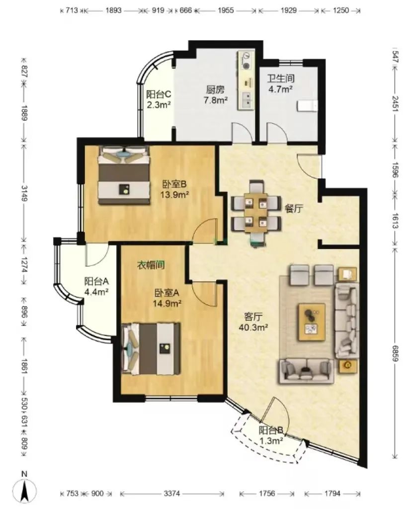 房间要方方正正,金角银边少。多边多角的公寓不仅难以摆放家具,还浪费了实际面积,整体空间会显得狭小紧凑。