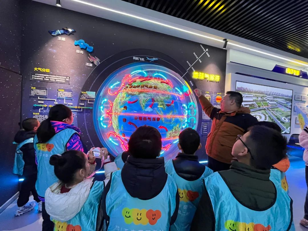 进入气候模拟厅的那一刻,大家瞬间被周围模拟的天气景象深深吸引。孩子们积极与评论员交流,探索暴雨、闪电、台风等各种天气条件与人们生活的关系,学习如何在气候灾害来临时预防和紧急避险。“看!这是一个用来测量风向的测风仪,那里有雷达,可以帮助我们观察云的动态……”当我们来到户外观测场时,孩子们聚焦在每一个科学仪器周围,全神贯注地听解说员老师介绍每一个设备的名称和功能。这次气象科普体验活动让孩子们了解气候工作的流程和重要性,了解气象数据收集和分析的方法,进一步增强人们对气候灾害的预防意识。