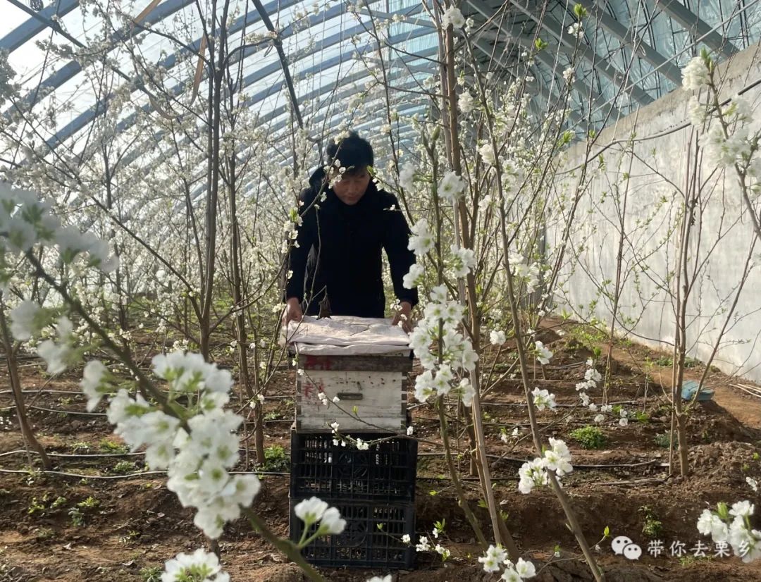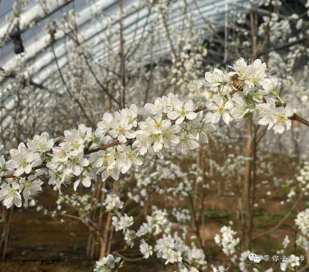 "樱桃李花盛开,每天都有游客来赏花,估计还能开一个星期左右。“花期也是我们忙碌的时候,因为是蜜蜂授粉,所以要严格控制棚内的温度,”农场负责人李兴军笑着说。只有温度合适,蜜蜂才能飞出授粉。现在我们在棚子里放一个蜂箱就够了。”他一边说,一边仔细地看着棚子里的温度和花朵的状况,眼里充满了对这片花海的关怀和期待。