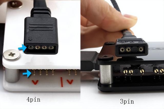 早些时候,不同主板制造商的控制软件支持不同协议的照明同步,这主要表现在外部。 RGB 在接口上,例如最初的主板通常使用。 12V 4pin 这类插座属于模拟信号控制, Pin 构图是最简单的“红、绿、蓝” 公用地线",三种颜色的灯珠可由主板控制软件调整,但同时只能显示相同的颜色,而且插头容易插反,造成不能点亮的情况。