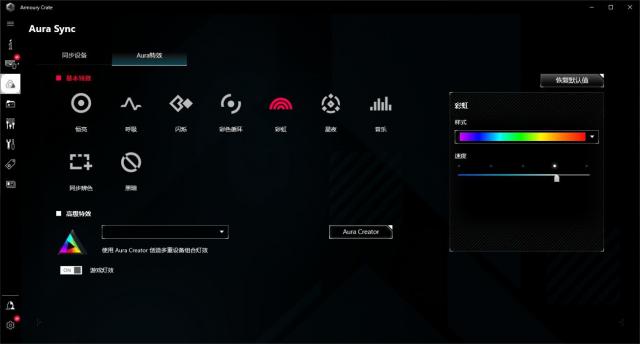 如今,大多数主板照明控制软件,一般都集成在监控中心,如华硕奥创中心。 AURA SYNC 包括内存、显卡、键盘、鼠标甚至路由器在内的照明链接可以实现,控制软件中可以看到支持神光同步的设备,并且可以设置链接或单独的照明设置。
