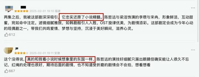 就之前的剧情而言,观众的感觉都是高度的恢复,“忠诚再现了小说的精髓”,可以看出,主创也非常了解原粉想看什么。