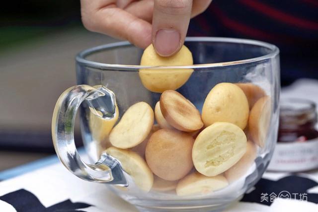 烤好后大小就像一元硬币大小,宝宝拿着刚刚好,稍凉一会儿就变得脆脆甘甜。