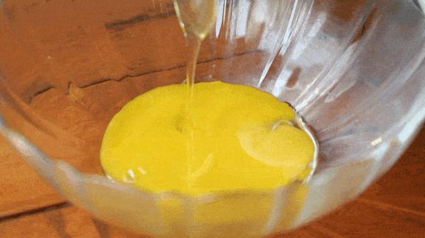 1. 首先将蛋黄蛋清分开,打入两个蛋黄和一个蛋。
