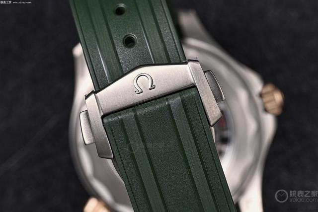 手表与一体式绿色橡胶表带搭配折叠表扣,表带柔软细腻,贴合手腕,即使长时间佩戴也不会感到不适。折叠表扣的设计不仅方便佩戴和提取,还增加了手表的安全性,防止意外脱落。表带的绿色与表盘和表圈的绿色相匹配,形成统一的整体,使手表的外观更加和谐美观。