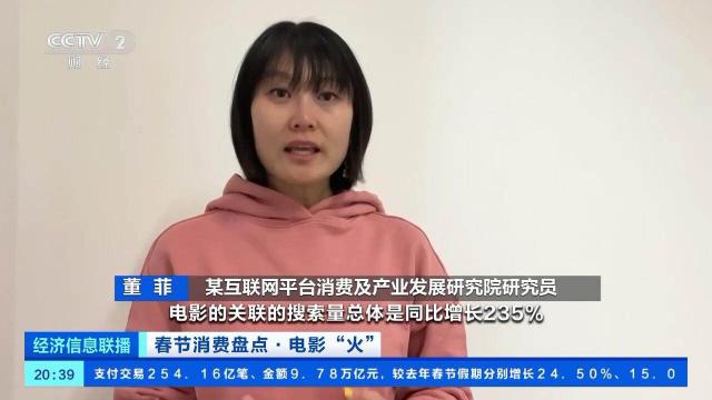 网络平台消费与产业发展研究所研究员 董菲:就搜索热度而言,电影关联搜索总量同比增长。 相关产品销量同比增长超过235%。 5 倍数,其中哪一种相关产品的销售额同比增长超过 30 两倍,射雕英雄传相关产品增长超过 10 倍。