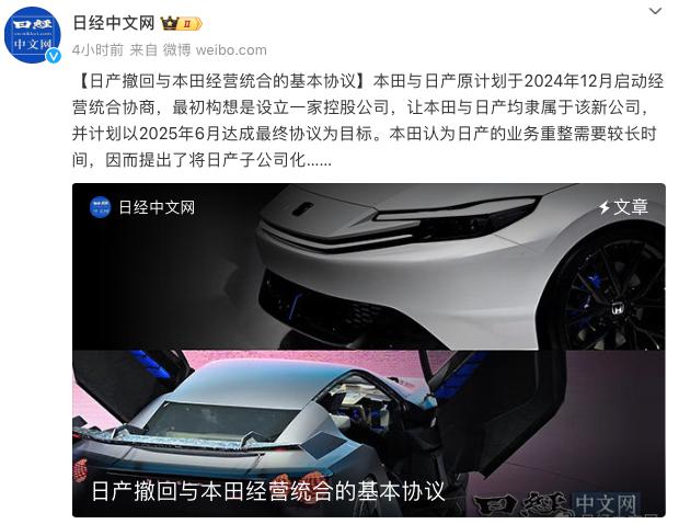 根据日经消息,日产汽车已经决定撤销与本田就业融合达成的基本协议。(MOU)。