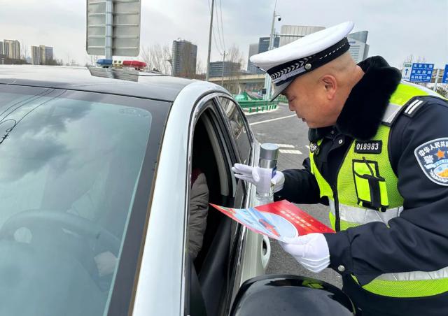 "爹爹,新年快乐!出门时记得戴上头盔。" 2 月 4 日上午,江夏区交通大队民警辅警通过零距离普法宣传发放宣传彩页,告知群众安全出行注意事项,告诉大家骑电动自行车(摩托车)要戴安全头盔,不要酒后驾驶,不要乘坐超员、无证、无证车辆,这样才能文明守法,安全出行。