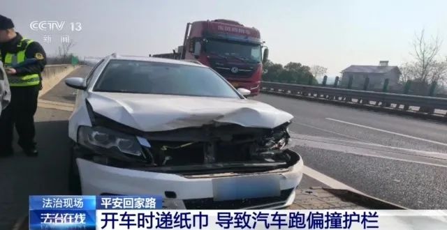 据了解,事故的原因是驾驶员田某在驾驶时一手握着方向盘,一手递给孩子纸巾,造成方向跑偏,造成事故。