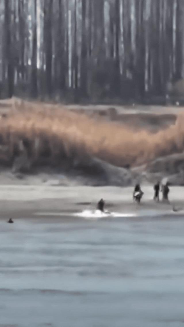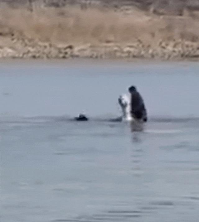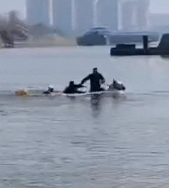 他的搭档依立拜立马冲向江心。