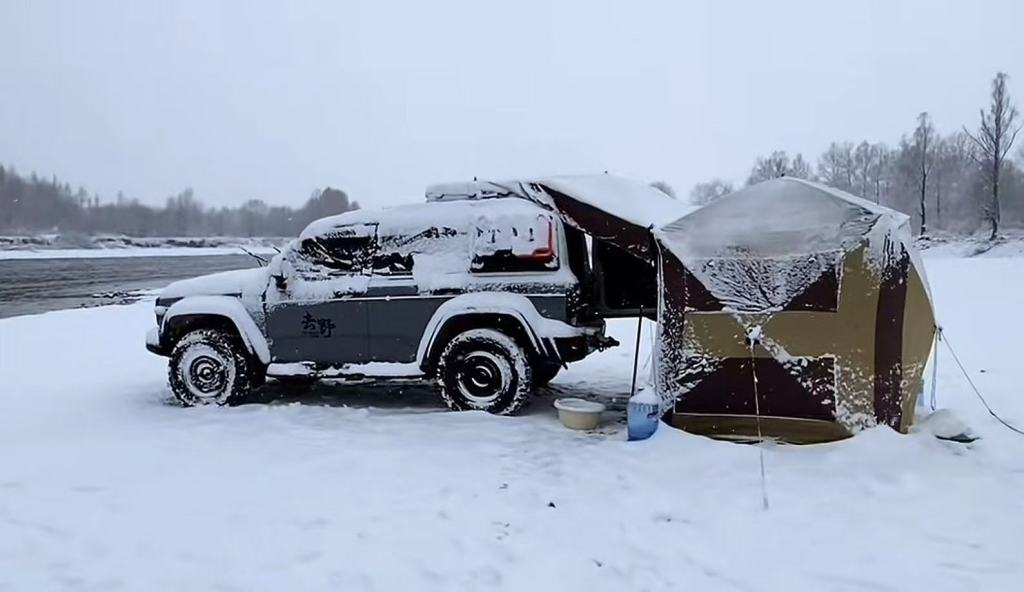刚到根河不久就下雪了,刘大力的车和车尾帐篷 被访者 供图