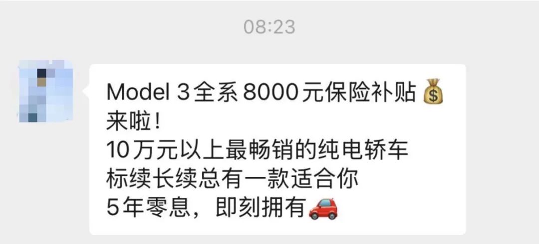今天早上8点,特斯拉的销售开始群发消息,同步特斯拉刚刚推出的新折扣。