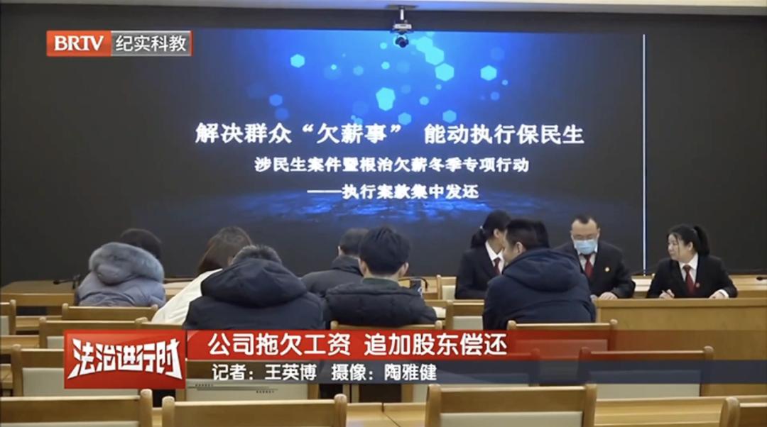 近日,北京广播电视台科教频道《法治进行时》频道特别邀请大兴法院执行局法官刘朝对法院执行工作进行普法,并报道了李浩法官团队办理的一起拖欠工资案件的执行案件集中归还现场。让我们跟随节目镜头,深入了解法院的执行情况。