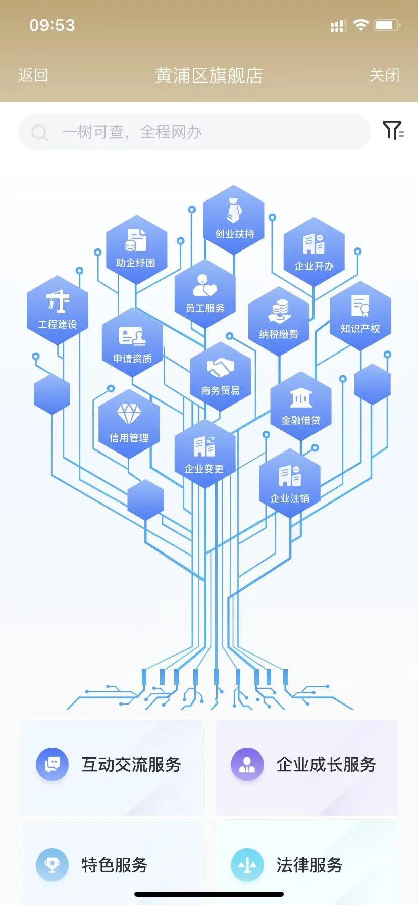 升级四:新增沟通交流、企业成长、特色服务、法律援助、政务服务地图五大服务区。提供区内各政府服务中心、商业中心、专业服务机构、商业建筑的导航指导,开拓公司微课堂、活动广场等板块,提供丰富的企业成长服务,黄浦区1 7 N“产业政策体系等特色服务,接入上海市法律法规书、“外滩融资”黄浦区信易贷综合服务平台,提升为用户提供法律、融资等专业服务的能力。