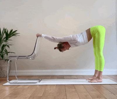 吸气,臀部向后,双腿伸直;