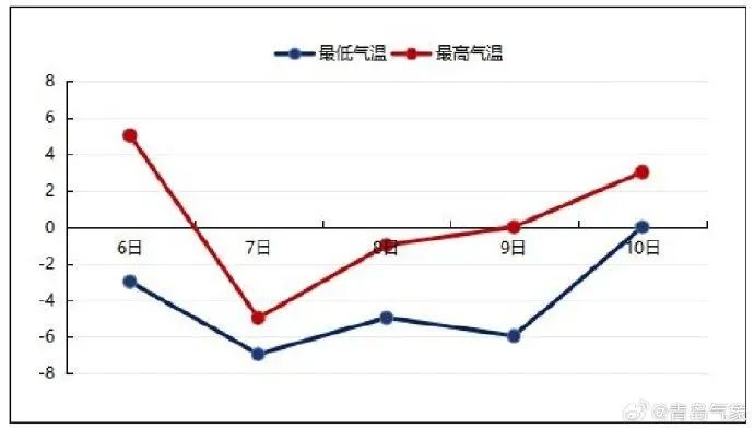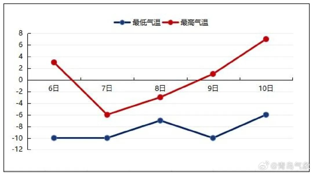 图2:6日~十日青岛莱西气温预报(单位:℃)