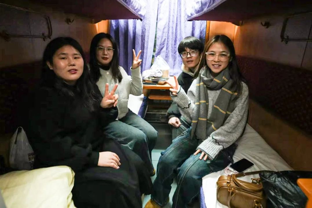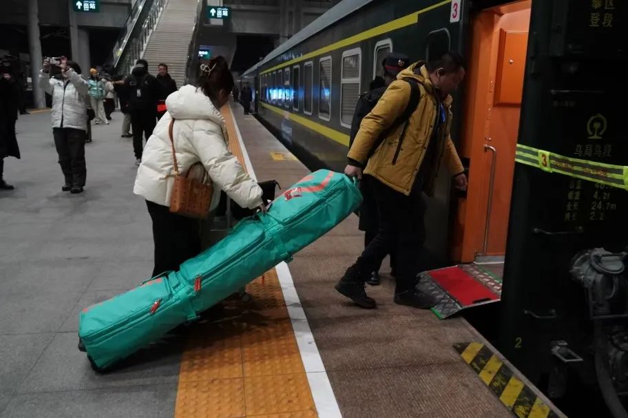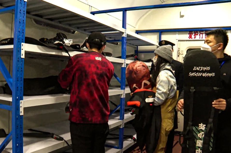 “坐火车去阿勒泰滑雪太方便了!火车上不仅有专门放雪板的车厢,还有固定的绑带。我们还在车里遇到了志同道合的“雪友”,大家聊得很开心!”