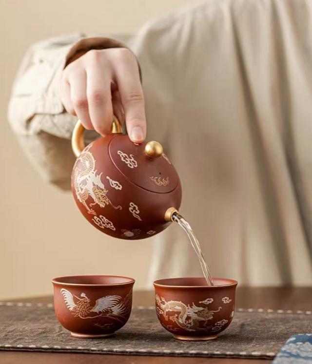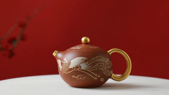 这个西施壶太神奇了,足金手绘龙凤呈祥,倾茶瞬间如凤鸣!