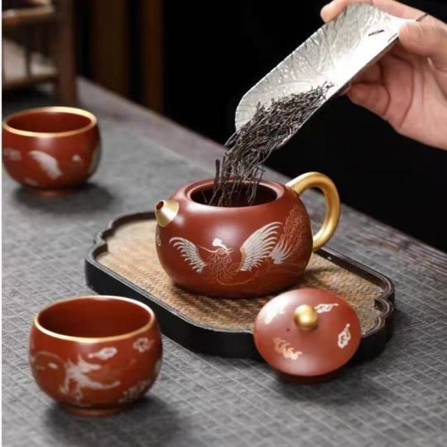 注水后,往外续水时会发出清脆的声音,就像凤凰的啼叫一样,给喝茶增添了独特的快乐。