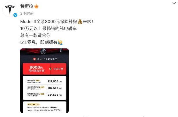 这也是特斯拉第一次补贴保险和 5 年度免息一起推出。