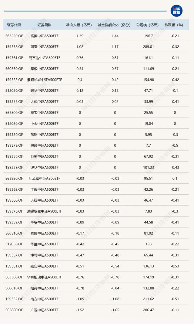另外,上周五的比赛 26 只中证 A500ETF 合计净流出 1.57 其中有亿元 7 只有资金加持才能得到。