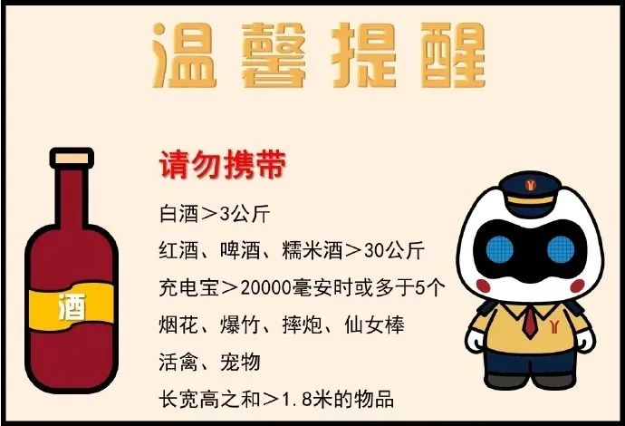 春节旅游高峰返回地铁时,这些东西不能携带。↓↓