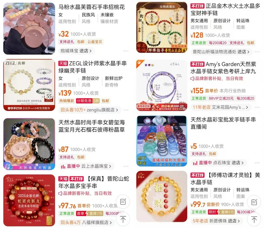 值得一提的是,与水晶相关的玄学也经历了“出口再进口”。2024年,东海县“水晶之都”水晶成交额近460亿元,其中跨境电商成交额达50亿元。